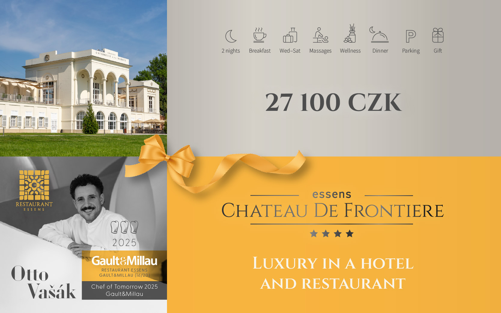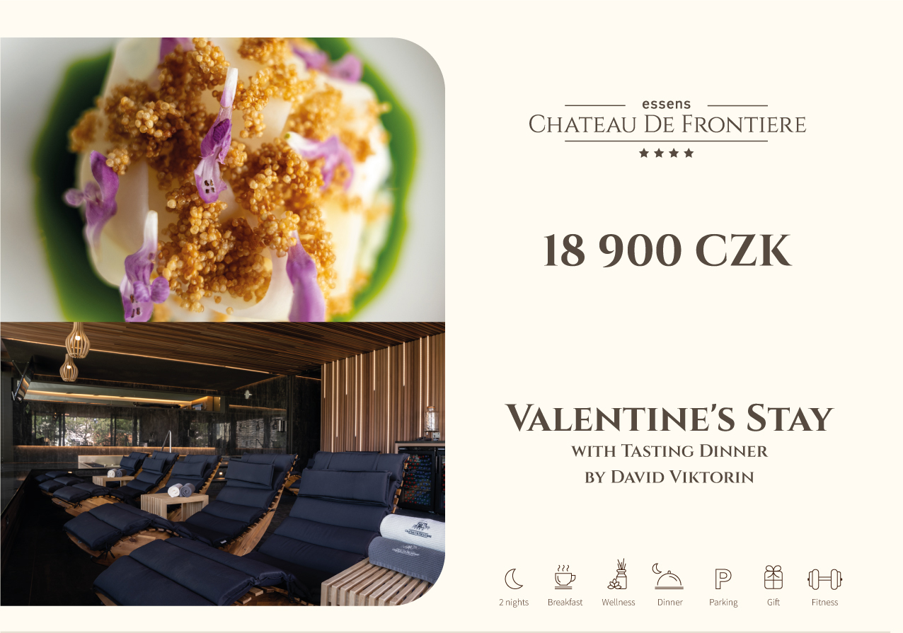 Experience unforgettable moments with your partner in the romantic setting of our hotel. We have prepared a unique Valentin's stay for you, which includes romance and gourmet experiences. An unforgettable Valentin's tasting menu by chef David Viktorin and his team complemented by a relaxing atmosphere which will stay in your memories for a long time.