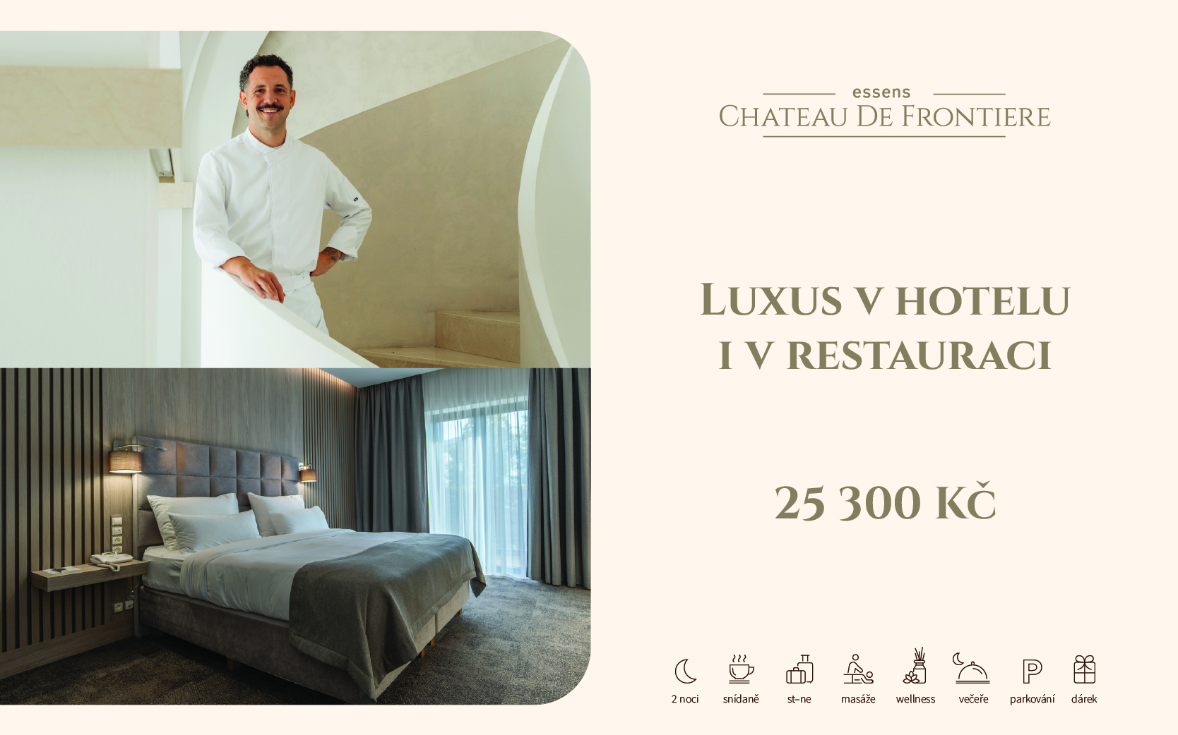 Vychutnejte si špičkovou večeři servírovanou v elegantním prostředí a užijte si noc v komfortním pokoji našeho hotelového resortu. Ideální pro ty, kteří chtějí na chvíli zpomalit, dopřát si výjimečný večer a nechat se hýčkat.
